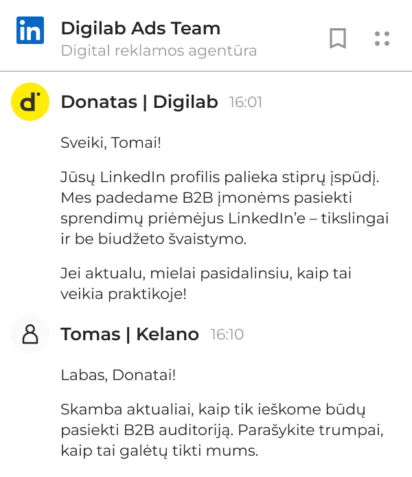 Sukuriame reklamos tekstus ir patariame, koks vizualas ar formatas geriausiai veiks LinkedIn aplinkoje.